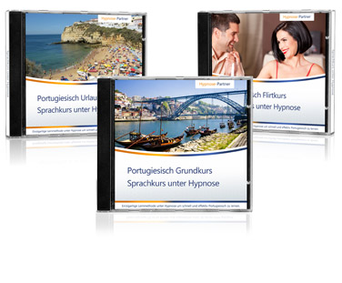 Die einzigartige Lernmethode unter Hypnose ist in jedem dieser drei Portugiesisch Sprachkurs CDs enthalten. Bei dieser Lernmethode unter Hypnose wird das Gehirn in einen extrem aufnahmefähigen Lernzustand versetzt, in welchem das Unterbewusstsein neue Informationen schneller und effektiver verarbeitet. Die Konzentrationsfähigkeit wird gesteigert und man taucht mental in die Welt des Sprachkurses ein. Dabei werden die Wörter und Redewendungen in ihrem thematischen Zusammenhang und in ganzen Sätzen im Gedächtnis fest verankert. Vom Unterbewusstsein werden diese Sprachdialoge ähnlich wie ein "Deja-Vu" automatisch ins Gedächtnis gerufen, wenn es die Situation erfordert und man beispielsweise im Restaurant nach etwas Bestimmten gefragt wird.
